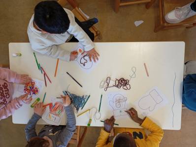 Alcuni bambini hanno scelto un solo colore, altri hanno mescolato tutti i colori disponibili. Non c'era un modello giusto, solo espressioni diverse.