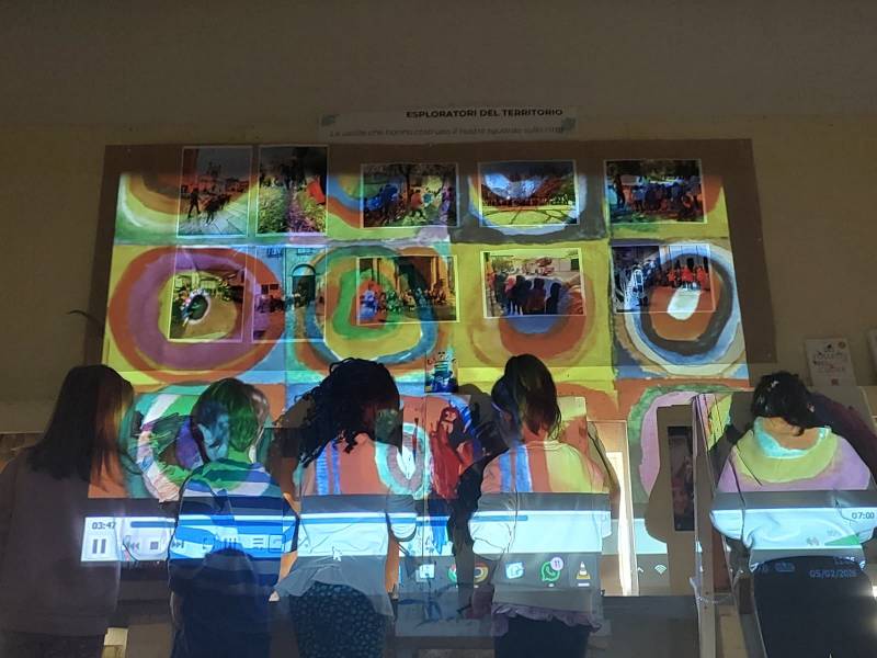I bambini hanno dipinto ciò che sentivano guardando le opere. Nessuna riproduzione, solo emozione tradotta in colore. Tre alla volta, movimento naturale.